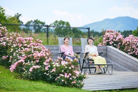 ヒルテラス筑波山麓とバラを眺めながら、開放的で華やかなウッドデッキでピクニックを。