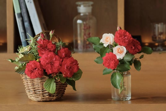 春バラと初夏の草花摘み&花かご摘みバラを摘んで持ち帰ろう! 園内でガーデナーが育てた春バラと春の草花を摘み取って、お持ち帰りできる体験。ガラスのボトルとカゴがお選びいただけます。