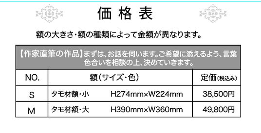 ご依頼されて方のお気持ちを優しく包み、時間と共に深みの増す額となっております。