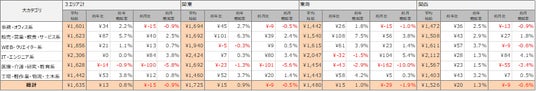 【職種別】5つの職種で前年比プラス