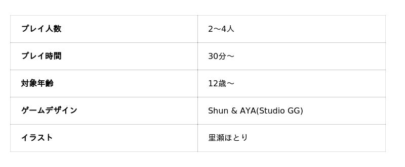 ゲーム終了時、建物の効果や「消費」で手に入れた分すべてを合計し、最も勝利点を獲得していたプレイヤーが勝利し、最も発展した開拓地、“最幸の地(クローバーランド)”の栄光を手にします。ゲームデザインはShun & AYA (Studio GG)