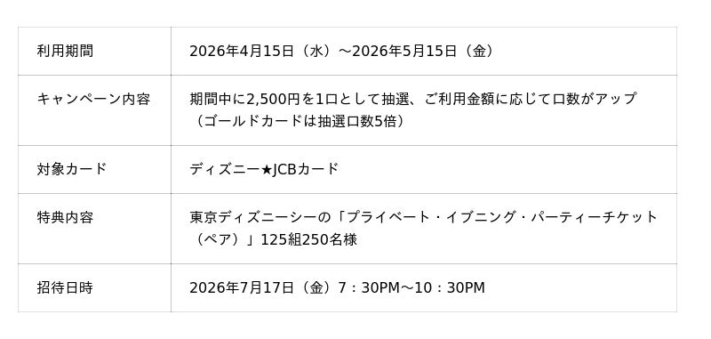 株式会社ジェーシービー (本社:東京都港区、代表取締役会長 兼 執行役員社長:二重 孝好、以下:JCB)は、ウォルト・ディズニー・ジャパン株式会社(本社:東京都港区、代表取締役社長:日色 保)と提携して発行するディズニー★JCBカードのラインナップとして、「東京ディズニーシー(R)25周年記念カード」を2026年4月15日(水)から2027年3月31日(水)までの期間限定で発行いたします。