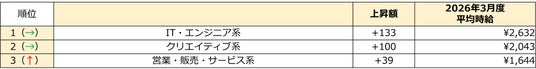 3月度の職種別/時給額ランキング