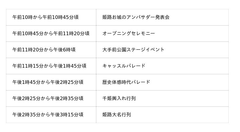 二日目の5月23日(土曜日)は、パレードやステージイベントを行います。今回のパレードは城南線北詰「姫路城前」をスタート。南進し、国道2号線(大手前交差点)までのコースとなっています。