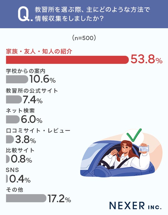 株式会社NEXER・運転免許取得時の教習所選びと満足度に関する調査