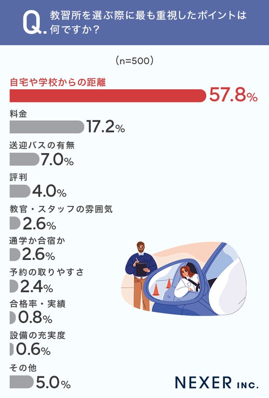 教習所には一定期間にわたって何度も通うことになるため、距離の近さが圧倒的な決め手になっているのは自然な結果といえるでしょう。