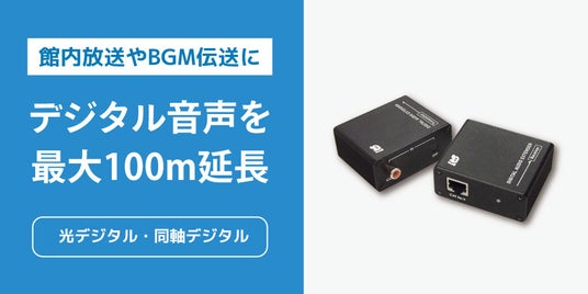 本製品は、光/同軸デジタル音声信号を100mまで伝送できる延長器です。