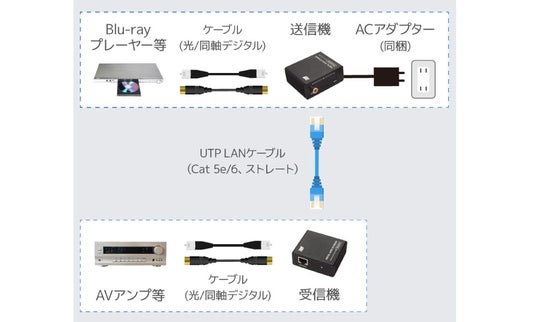 - 光デジタル/同軸デジタル音声を最大100m伝送