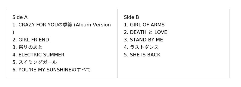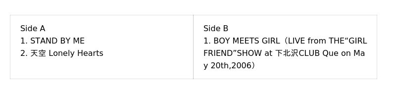 - 発売タイトル:『バンドBについて』『GIRL FRIEND』『ELECTRIC SUMMER』『STAND BY ME』『C』