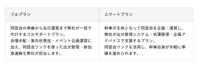 同窓会リンクは、笑屋の同窓会プロデュースサービスの以下2プランどちらでもご利用いただけます。