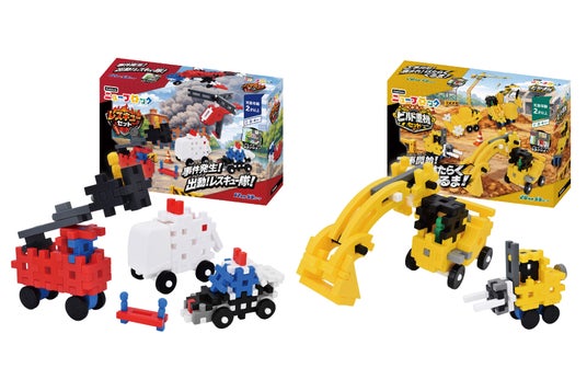 はたらくくるまの世界を、ニューブロックとごっこ遊びで楽しめる新セットが登場