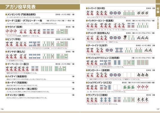 ▲巻末には、練習問題や用語解説、アガリ役早見表を収録。