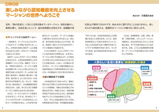 ポイント1.認知症対策に重要な「前頭前野」をフル活動させる牌を並べ替える「リーパイ(理牌)」や牌を捨てる「タァパイ(打牌)」、さらに役を考える過程で、記憶力や判断力を同時に使います。これにより、認知機能の向上が期待されます。
