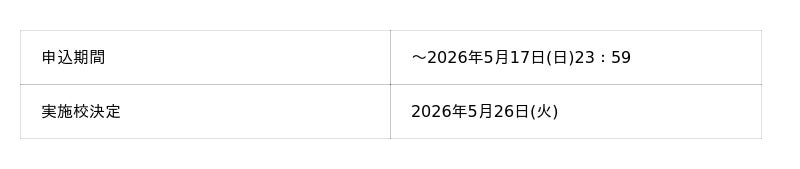 - 学校の授業の一環として実施していただくことが条件となります。- 実施希望日を複数日ご入力の上、お申込みください。