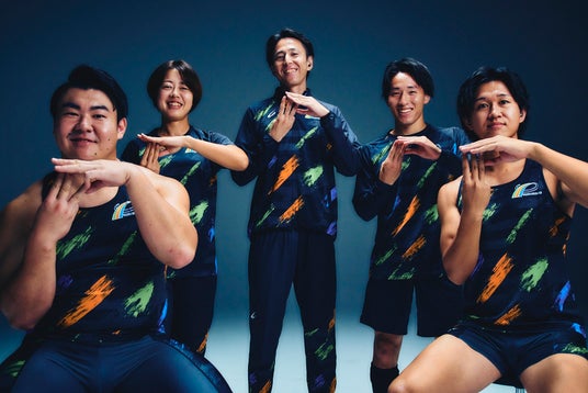 当社所属選手(競技種目)[写真左から] 遠山莉生選手(デフ陸上男子ハンマー投)、門脇翠選手(デフ陸上女子100m,200m) 、長内智選手(デフ陸上男子棒高跳) 、瀧澤諒斗選手(男子デフサッカー) 、北谷宏人選手(デフ陸上男子棒高跳)※本写真外所属アスリート 加藤茜選手(パラ陸上女子100m,200m,400m)