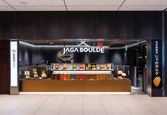 「JAGA BOULDE」は、「カルビープラス」と「東京ばな奈」のコラボレーションから誕生。コンセプトは、“高みを目指して 旨味をつかむ”。ポテトチップスの高みを目指し独自のこだわりと特別な製法を採用した、進化系ポテトチップスの東京駅限定ショップです。