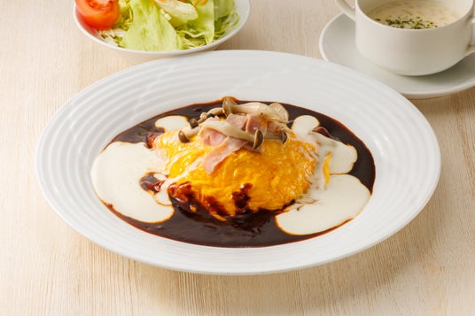 自家製ホワイトソースと濃厚デミグラスソースでお楽しみいただけます。