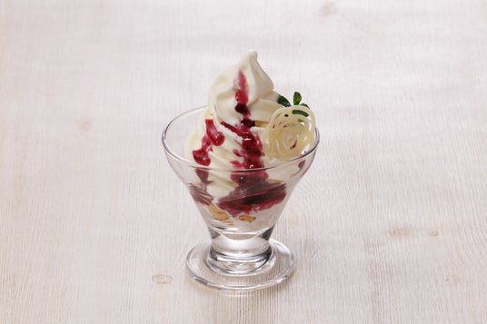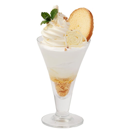 白バラミニパフェみるくの里特製ソフトクリームをのせたミニサイズのパフェです。