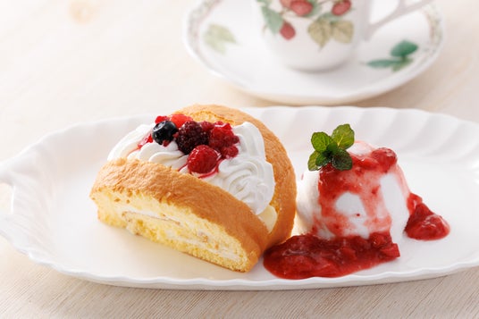 白バラみるくスイートプレート「食パラダイス鳥取県」特産品コンクール(令和7年度)で最優秀商を受賞した「白バラ牛乳生ロールケーキ」がみるくの里のレストラン限定のオリジナルスイーツプレートに大変身!