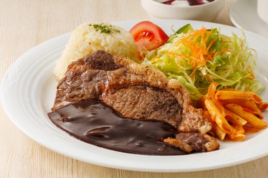 みるくの里ステーキプレート (スープ・ヨーグルト付き)鳥取県産牛肉のステーキをデミグラスソースでお楽しみいただけます。
