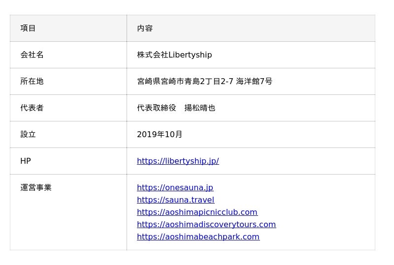 株式会社Libertyship(本社:宮崎県宮崎市、代表取締役:揚松 晴也)は、宮崎県‧⻘島