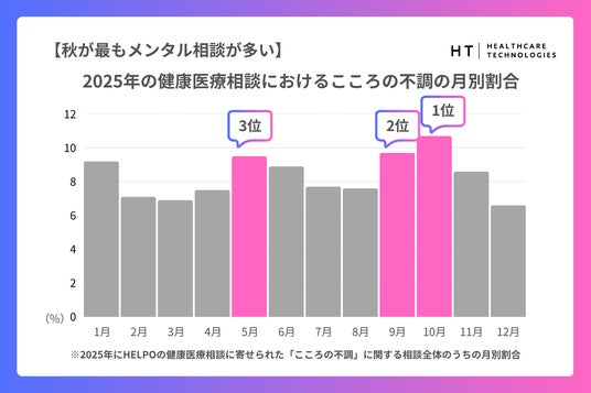 ソフトバンク株式会社(以下「ソフトバンク」)の子会社で、ヘルスケアアプリ「HELPO(へルポ)」を提供するヘルスケアテクノロジーズ株式会社(本社:東京都港区、代表取締役社長 兼 CEO:鴻池大介、以下「ヘルスケアテクノロジーズ」)は、2025年5月に寄せられた健康医療相談データを分析し、メンタル関連の相談内容に変化が見られたことをお知らせします。