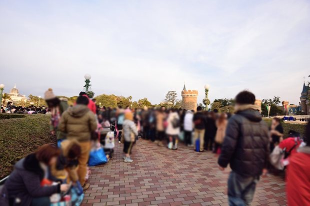 この日はまだ空いているほうと言える日でしたが、2時間程度待てばシンデレラ城に近い、プラザの中央付近で見ることができます。