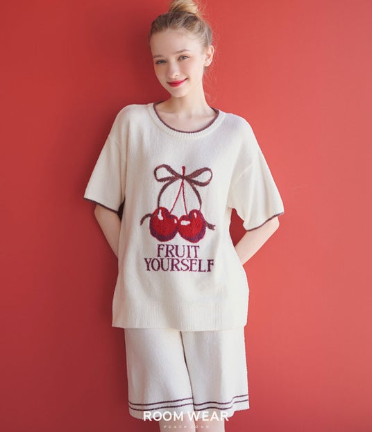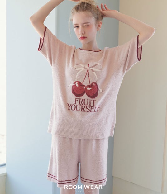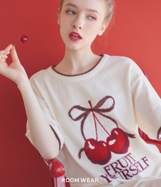 ロングシーズン活躍!薄手のふわもこニット×甘すぎないキュートなチェリー柄パジャマ