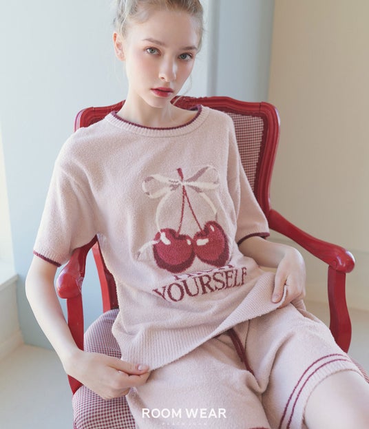 ガーリーマインドをくすぐるチェリー柄。柔らかリブのカットソーパジャマ。