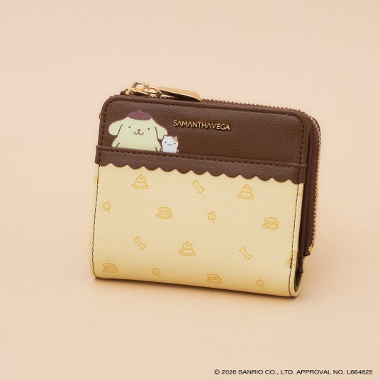 ポムポムプリンをイメージしたブラウンとイエローでデザインしたバッグ、折財布やバッグチャームが登場。