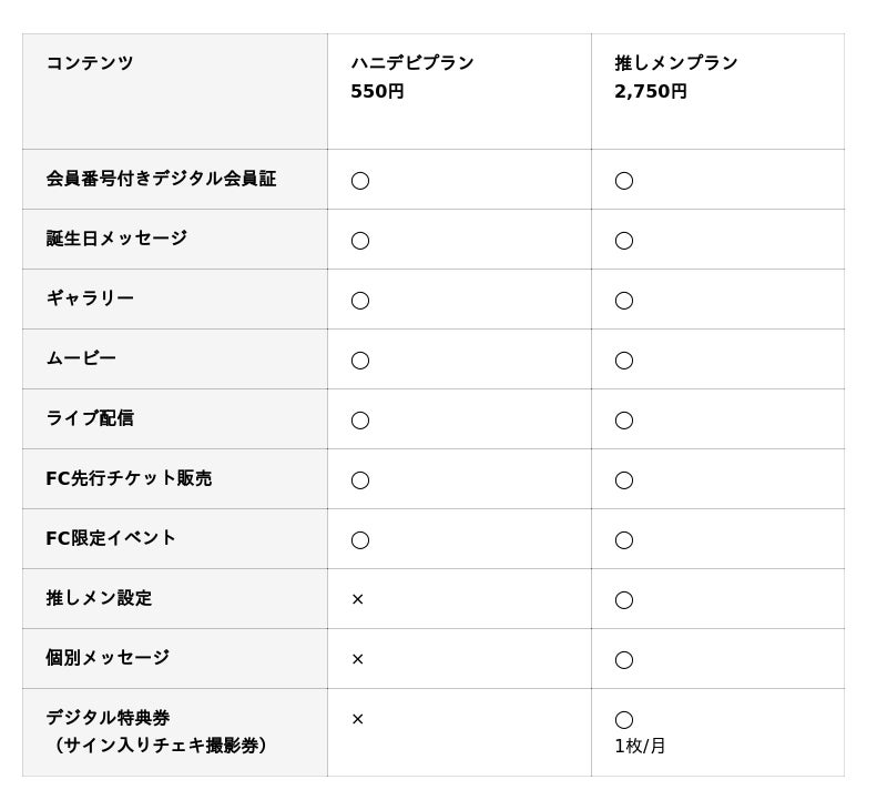 ※推しメンプランは、ハニデビプランの加入特典を内包しています。