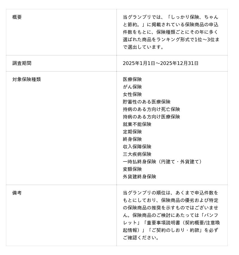この度公開した「2026年度 しっかり保険、ちゃんと節約。グランプリ」は、「しっかり保険、ちゃんと節約。」サイト内の下記ページよりご確認いただけます。