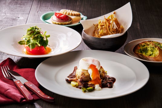 ナイフを入れると溢れ出す、旨みが濃縮された肉汁に、とろりと半熟のポーチドエッグが絡み、たっぷりのチーズとソースの香ばしい香りが食欲をかき立てます。五感で味わう鉄板焼きならではのコースには、ワンドリンクとさらにウェスティンルスツ温泉の入浴が付いて、ちょっと贅沢なご褒美ランチをお楽しみいただけます。