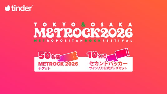 また、『METROCK 2026』とのコラボレーション企画として、Tinderユーザーを対象に、『METROCK 2026』のチケットや、セカンドバッカーのサイン入りグッズが抽選で当たるプレゼントキャンペーンを実施します。「ミュージックモード」を通じて音楽の趣味を共有しながら、リアルな音楽体験へとつながる機会を提供します。