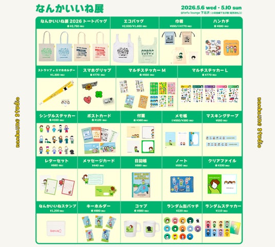 「まぁ、なんかいいねでいいんじゃない?」をコンセプトにした、ゆるくてシンプルなキャラクターたちのストーリーを発信するnankaiine studio(ナンカイイネ スタジオ)は、2026年5月6日(水)~55月10日(日)の5日間、tefu lounge 下北沢にて、「なんかいいね展 -nankaiine studio POPUP STORE in TOKYO 2026」期間限定ポップアップを開催いたします。