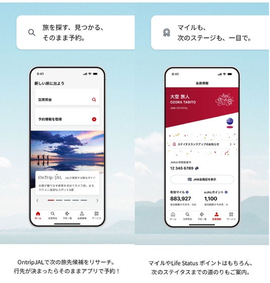 また、マイル数やJAL Life Status ポイントも手軽に確認できるようになり、現在の保有数だけでなく次のステイタス到達までの道のりを分かりやすく提示することで、お客さまの「次の旅」へのモチベーションにつながる体験を提供します。