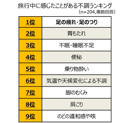 最も悩む人が多い不調は「歩きすぎによる足の疲れ・足のつり」/環境の変化による不調も