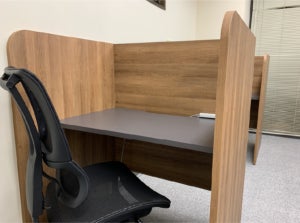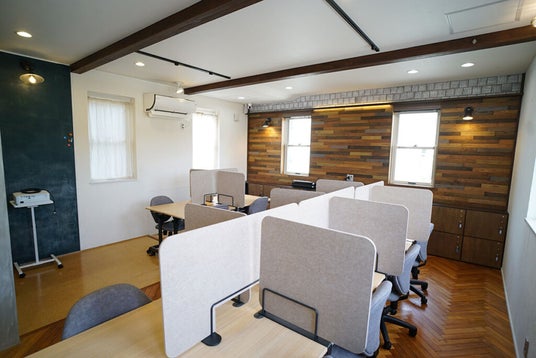 そこで、平日日中は職業訓練校のスペースとして、授業の無い夕方以降と土日は机の上にパーテーションを設置し勉強カフェとして利用することで、同一の空間を二つの目的に活用します。また、今後は職業訓練校と勉強カフェ、いずれのご利用者も互いに学べるデジタルスキルセミナーなどの講座も順次構想しています。