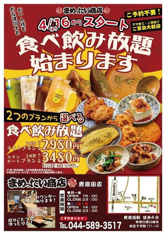 株式会社SANKO MARKETING FOODS(本店:東京都中央区、代表取締役社長:長澤 成博、証券コード:2762)は、2026年4月、神奈川県川崎市・鹿島田エリアに大衆酒場『まめったい商店 鹿島田店』をオープンいたします。本店舗は、「まめったい商店」ブランドとして4店舗目の出店となります。