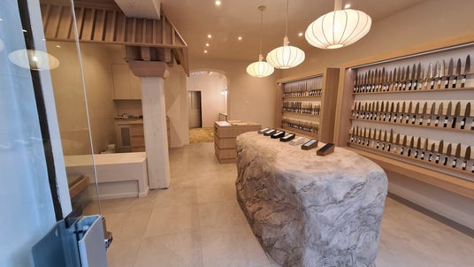 パリにオープンした「MUSASHI JAPAN フランス白店」は、「日本の匠の技」と「フランスのエレガントな美意識」を融合させた、ギャラリーのような空間として設計されています。店内では、和包丁を単なる調理道具としてではなく、職人の技術と思想が宿る“工芸品”として展示。素材、鍛造、研ぎ、仕上げーその見えない工程に想いを巡らせることで、その本質に触れることができる空間としています。