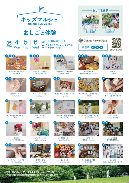 期間中はツツジやスプリングブーケガーデンが見頃になる予想。花や緑に囲まれた空間で、子供たちが主役となって「できた!」「買えた!」を体験できる特別な3日間をご提案します。