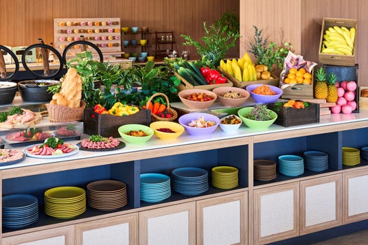 色鮮やかな食材が並ぶマルシェの屋台をイメージさせるビュッフェボード