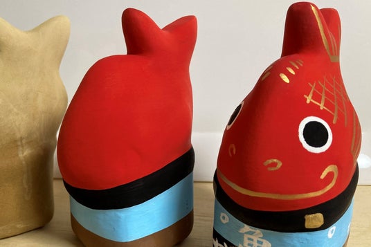 唐津くんちの世界観に触れられる二つのものづくり体験を期間中に用意。曳子(ひきこ)を指揮する際に使われる「采配」をオリジナルで制作する体験と、曳山をモチーフにした素焼きに自由に色付けを行う絵付け体験です。祭りの熱気や伝統を感じながら体験いただけます。