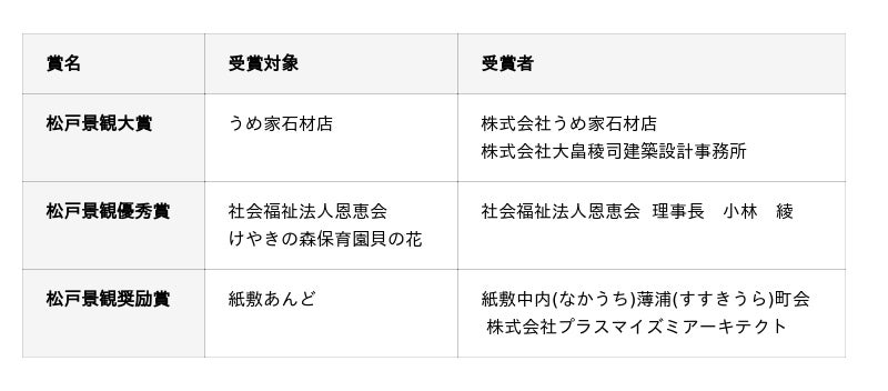 松戸市内の優れた景観を形成する、魅力的な建物やまち並み6作品を松戸市景観表彰に決定しました。
