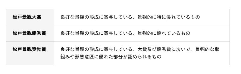 市民の応募推薦や、景観法に基づく届け出のあったもの、千葉県屋外広告物条例に基づき申請のあったもの中から選びます。▼詳しい景観表彰の情報は松戸市ホームページをご覧ください
