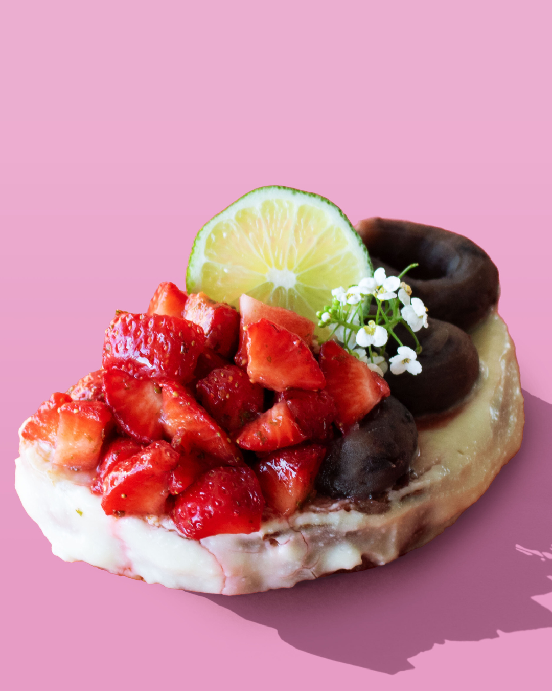 花酵母で発酵させた田舎パンをベースに、ココナッツ豆乳クリーム、有機あんこ、「あまりん」を合わせた贅沢なオープンサンド。仕上げには、一般には流通していない栽培期間中農薬不使用の横山農園のエディブルフラワーをトッピング。一口ごとに「和のコク」と「果実のフレッシュな甘さ」が重なり合い、一皿の中で味わいのグラデーションを楽しめる“体験型”デザートです。