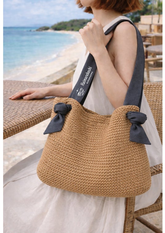 1周年記念ノベルティは、感謝の気持ちを込めたオリジナルのジュートバッグです。やわらかな風合いと、旅先にも日常にもなじむ佇まいを大切にしました。小浜島で過ごす、こころほどける余白の時間を持ち帰っていただけるような贈りものとしてご用意しています。