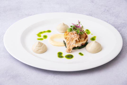 鱈とそのブランダートのグラティネ ばっけ味噌のムースリーヌ