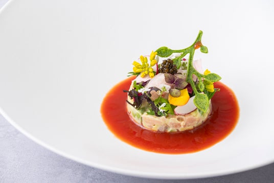 ・冷前菜 男鹿つばきサーモンとアボカドのタルタル ボタン海老のマリネ