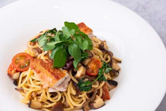 秋田県産比内地鶏と茸のぺペロンチーノパスタ